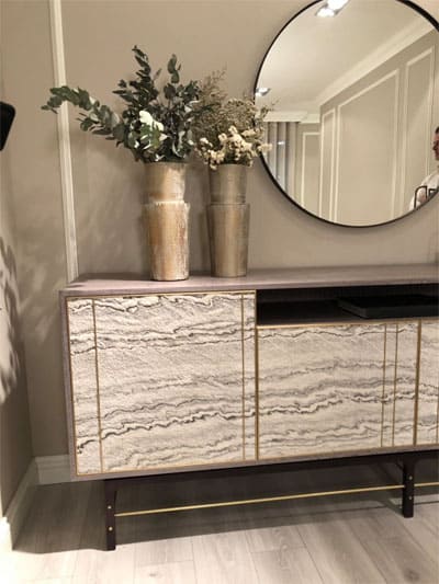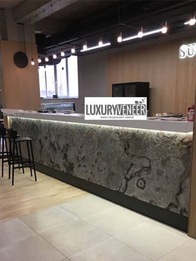 Кам’яний шпон — відмінне рішення для сучасного та функціонального дизайну. Цей тонкий і легкий матеріал широко застосовується для облицювання різних поверхонь, зокрема меблів, дверей, барних стійок та декоративних елементів інтер’єру.